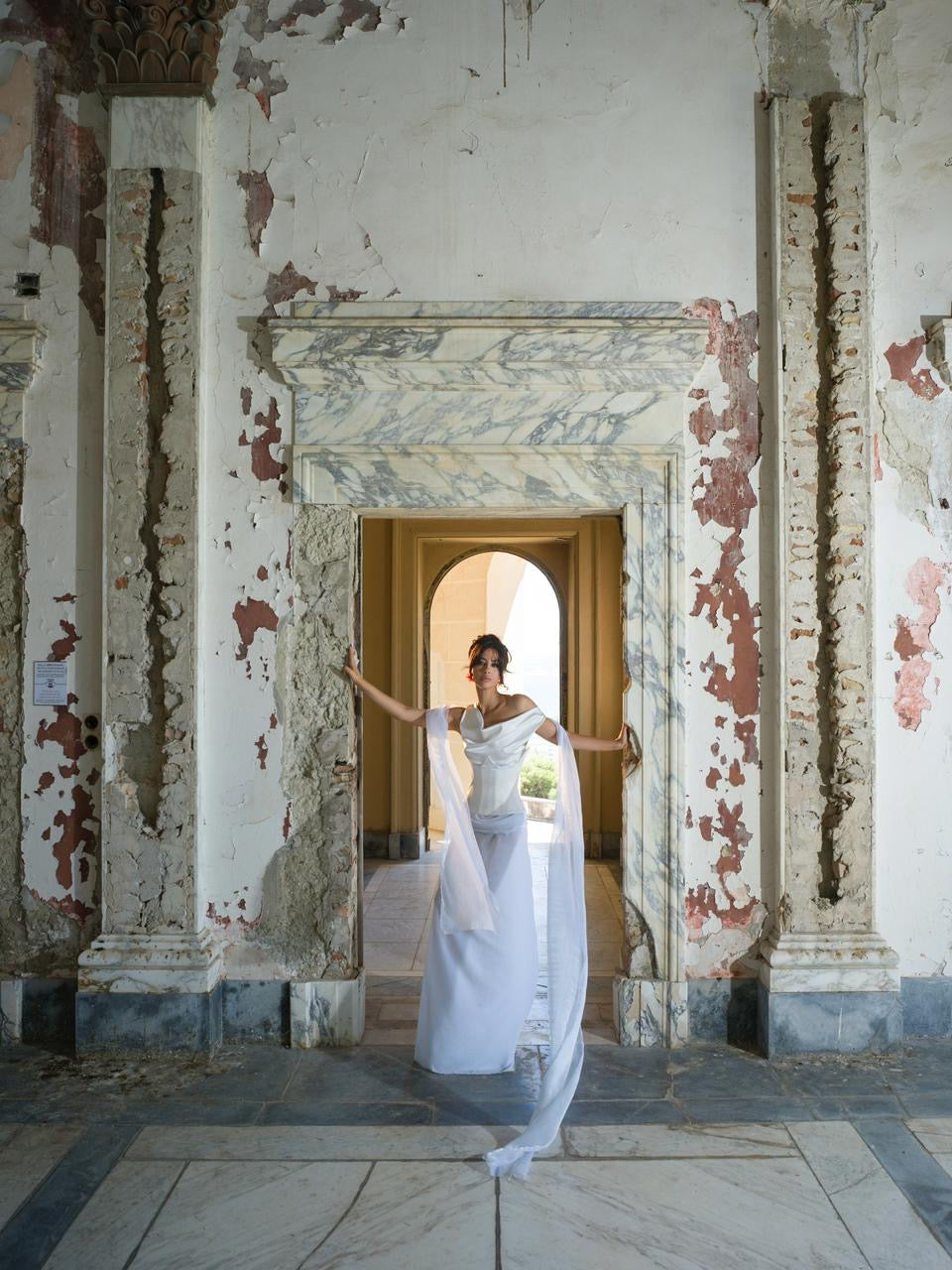 - The dress is made of soft silk satin, lace and a corset that is placed over the dress.