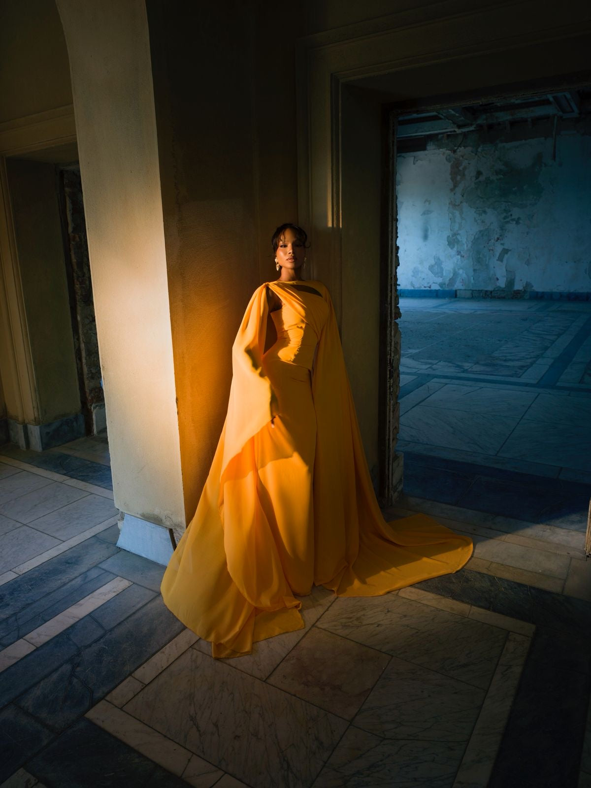 This dress is an expression of grandeur and strength through color and form – a garment that dominates the space and fills the light with its energy.