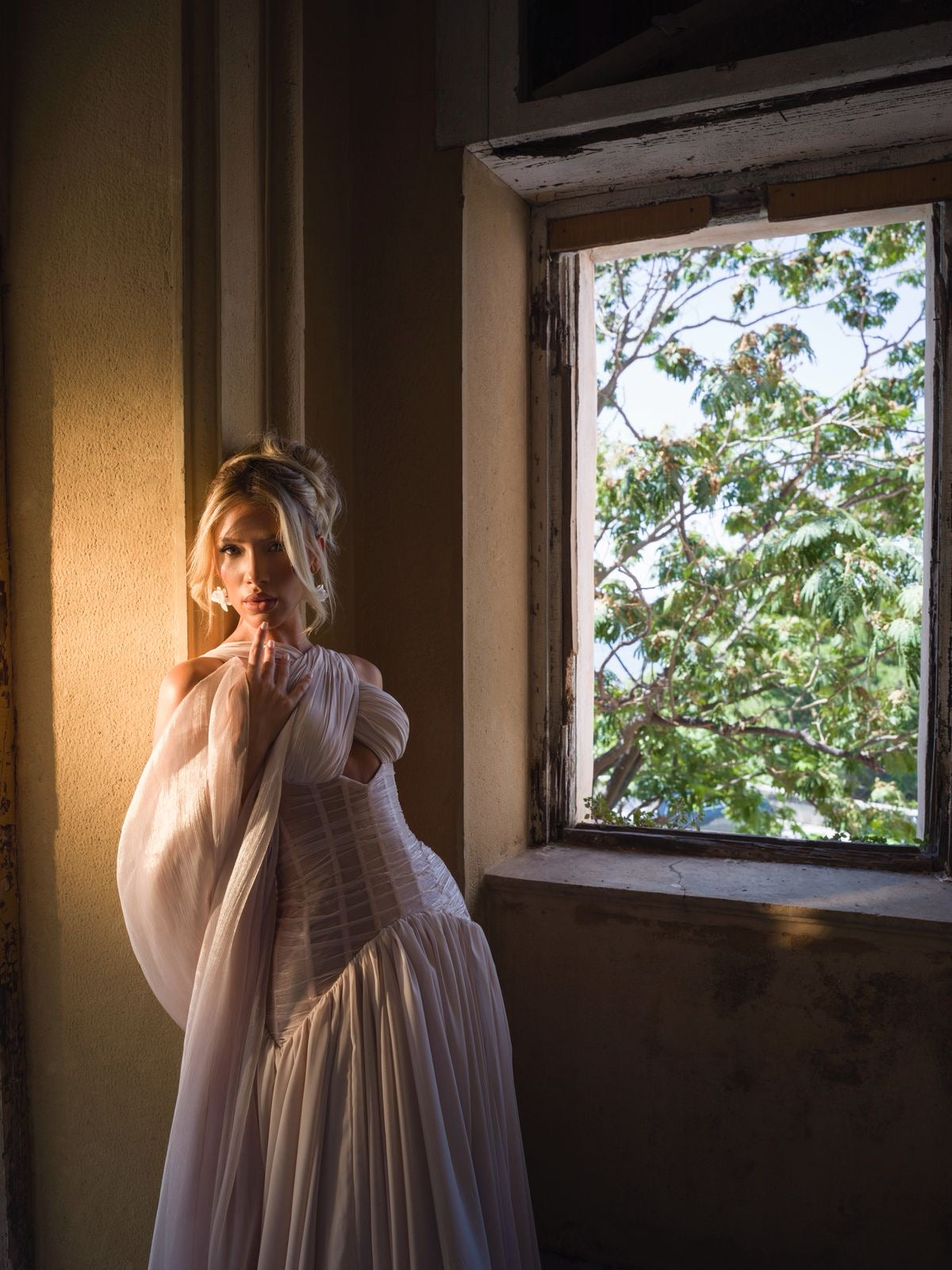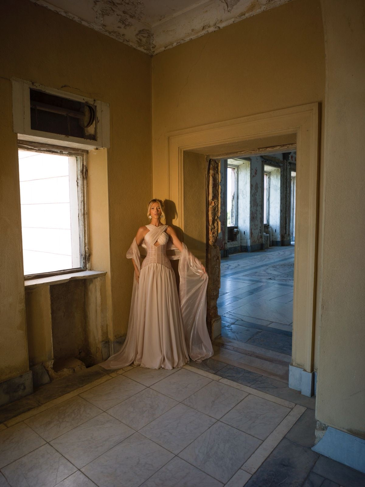 This dress is a perfect blend of delicacy and nobility – a garment that conveys serenity, softness, and elegance in every detail.